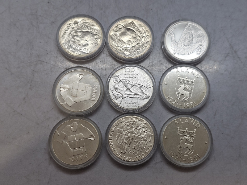 #1603 - 9kpl hopeisia juhlarahoja: 830h=144g & 925h=72g