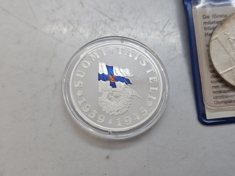#1605 Erä hopeisia juhlarahoja: Mm. Helsingin pommitukset, yht. 166,95g