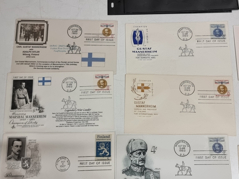 #1642 - 9kpl yhdysvaltalaisia Mannerheim -ensipäiväkuoria + 3kpl postikortteja