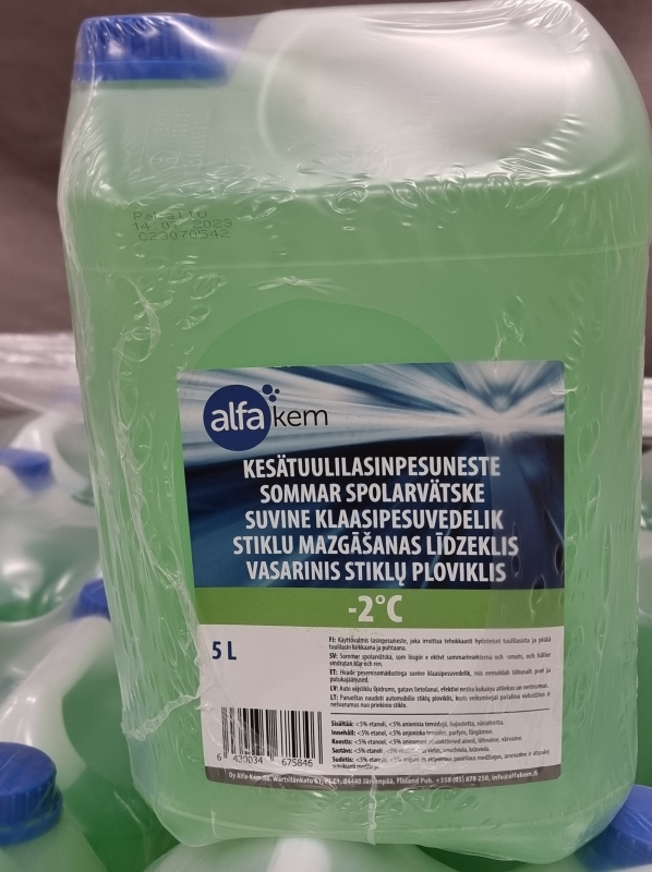 #2503 72kpl 5 litran kanistereitä Alfa-Kem tuulilasinpesunestettä. Pakkasenkesto -2 astetta