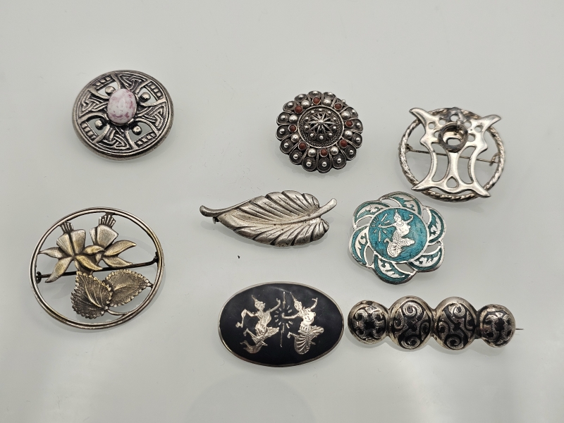 #1622 Erä vanhoja rintakoruja joista 45g hopeisia [6kpl]