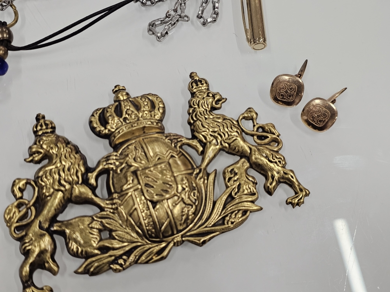 #2179 - Erä tavaraa: Mm. hopealusikka [10g], kalvosinnapit kultalevyillä ym.