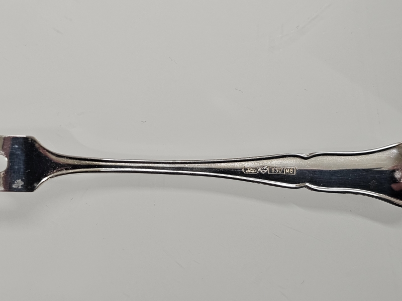 #930 12kpl hopeisia chippendale kahvilusikoita + 6kpl otinhaarukoita, 830h, 203g