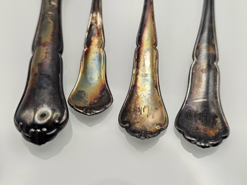 #1625 - Hopeisia ottimia: Lusikka ja haarukat 830h, 90g + teräskärkinen veitsi