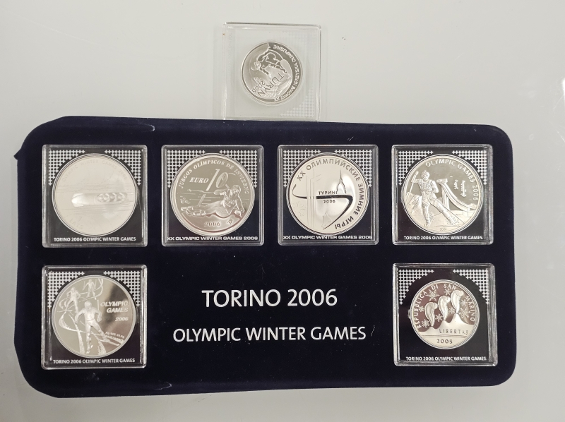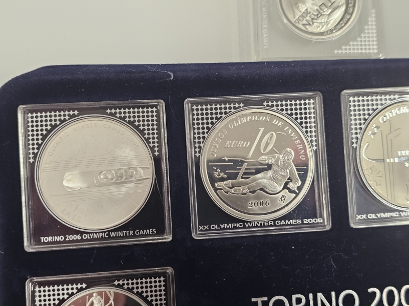 #951 - 7kpl hopeisia Torino 2006 olympialaisten juhlamitaleita, 925h, 180g