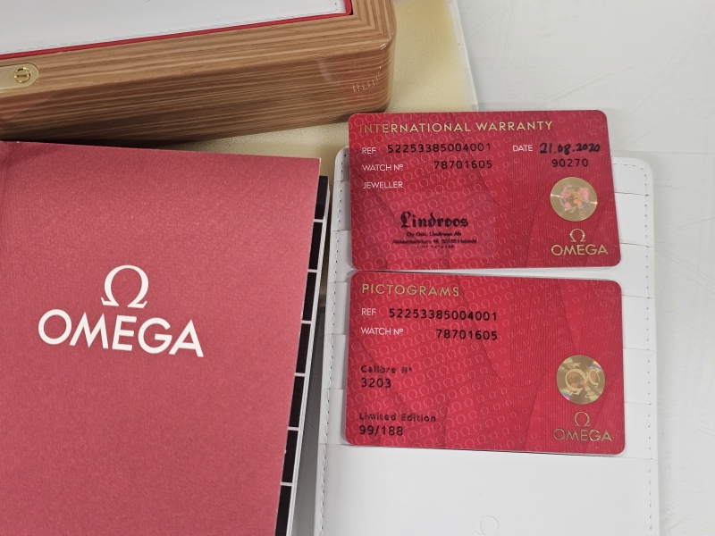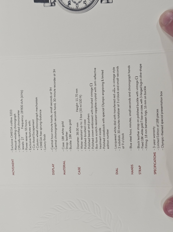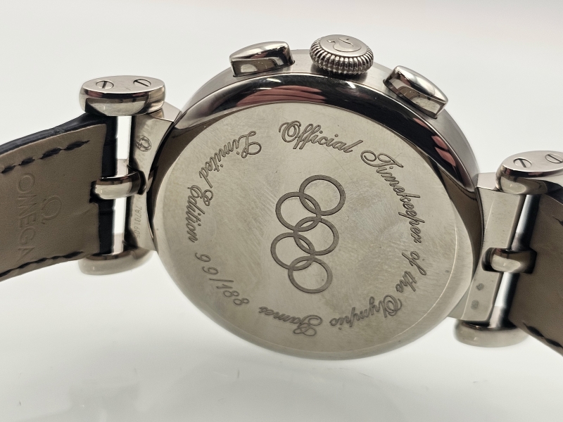 #953 Rannekello: 18k valkokultainen Omega Co-Axial Chronograph Olympic Limited Edition 99/188 Full set