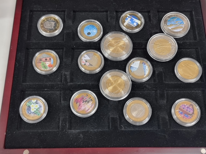 #1920 57kpl 5 euron erikoislyöntejä + salkku + rasia