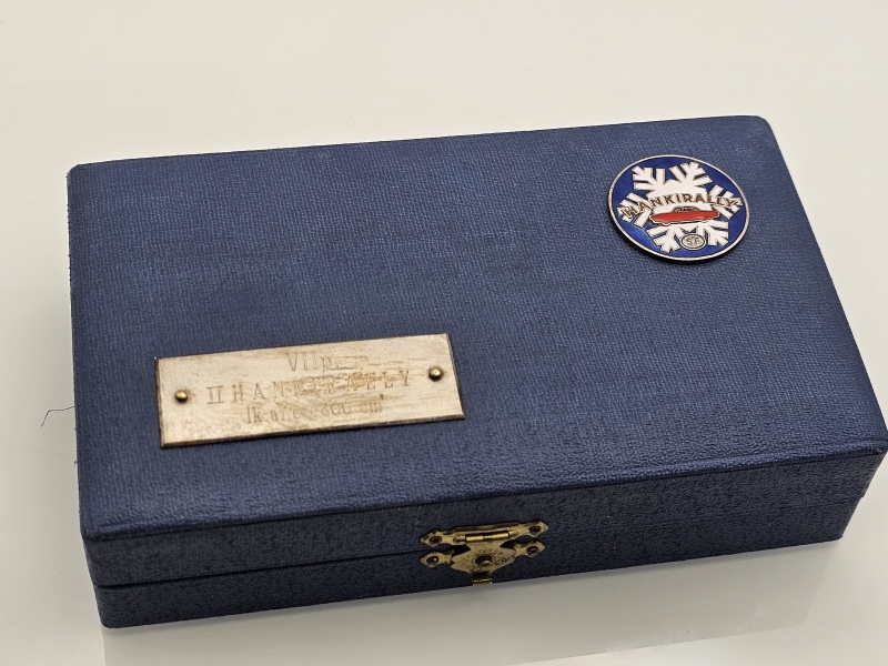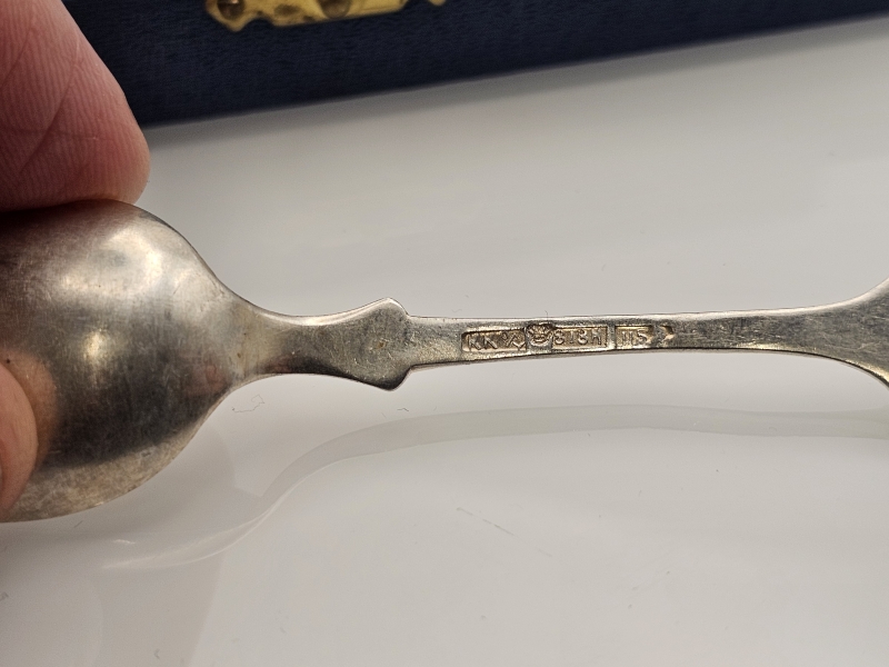 #958 6kpl hopeisia kahvilusikoita v. 1956 Hankiralli -kotelossa, 813h, 90g