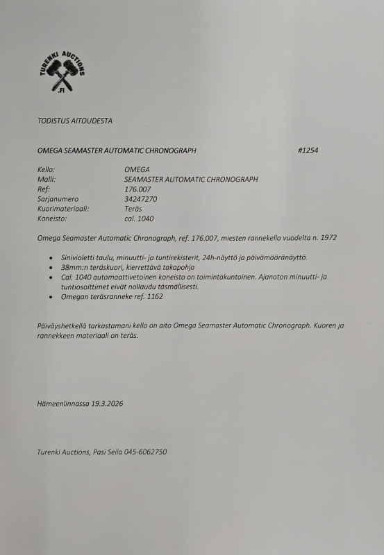 #1254 Rannekello: Omega Automatic Seamaster Chronograph v.1972