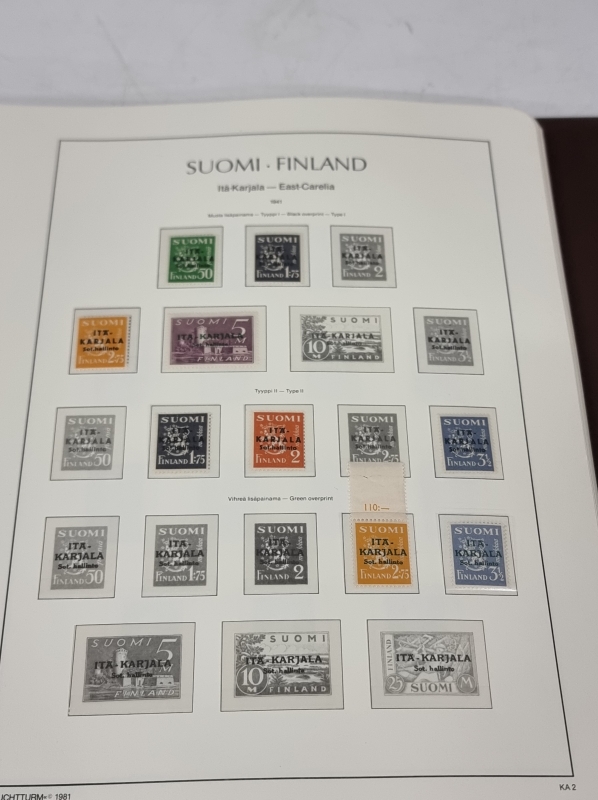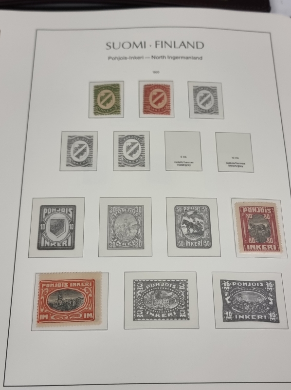 #1923 - 2 kansiollista suomalaisia postimerkkejä. Pohjois-Inkeri, Kenttäposti, Itä-Karjala ym.