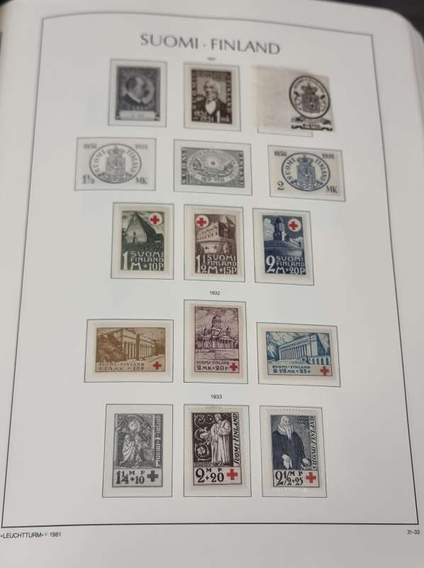 #1924 - 6 kansiollista suomalaisia postimerkkejä + tyhjä kansio