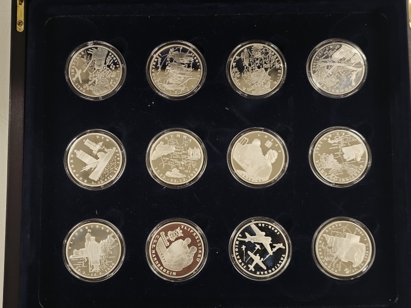 #964 15kpl hopeisia Suomi taisteli 1939-45 mitaleita, 925h, 390g