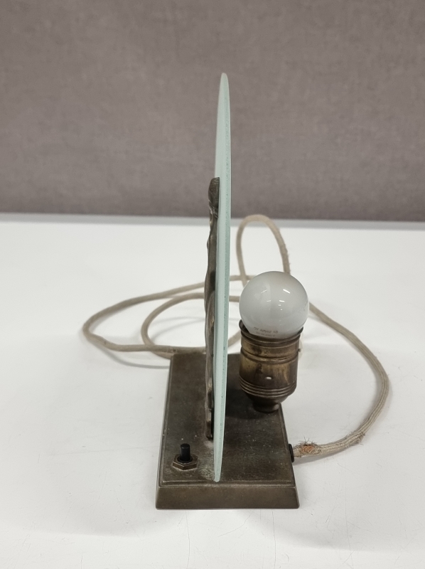 Sähköt uusittava ennen käyttöä. Lasissa pieniä kolhuja. Leveys 25cm ja korkeus 24cm.