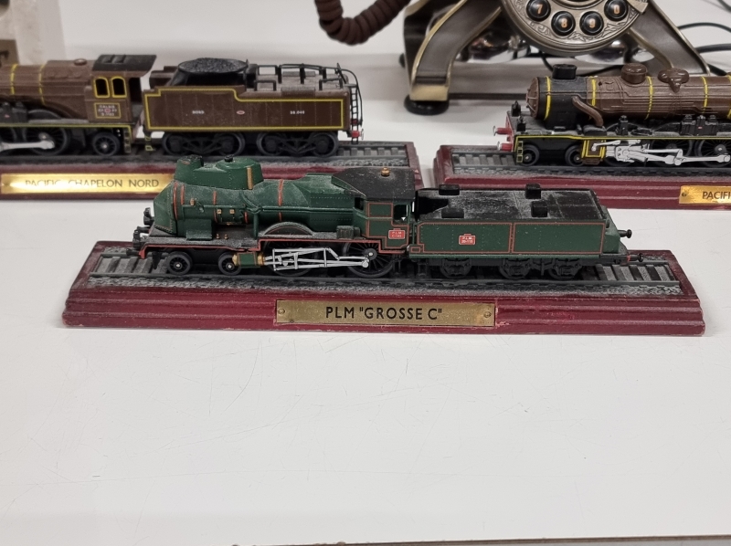 #2371 Vanhan junaradan osia + 3kpl koristevetureita ja vanhan näköinen pöytäpuhelin