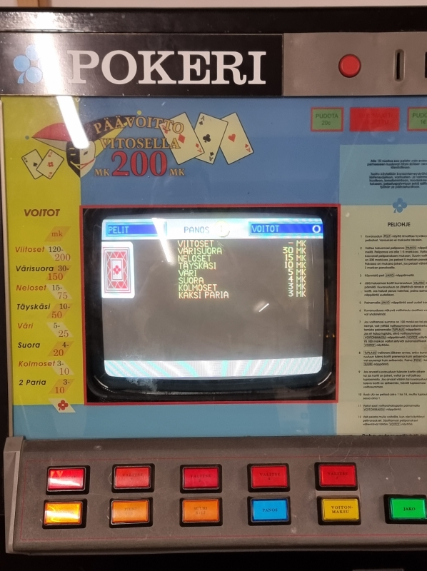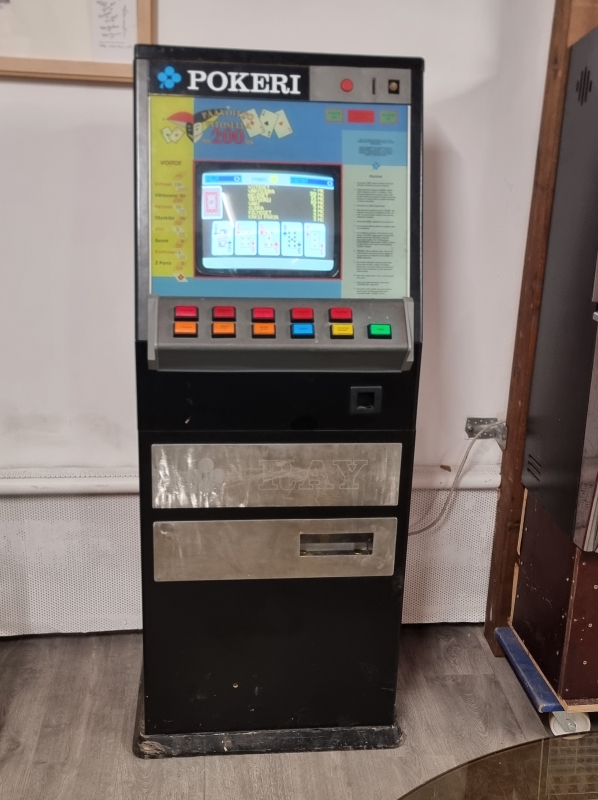 Toimiva, maksaa myös voitot. Omavalmiste: Koottu RAY:n eri laitteista. Muokattu toimimaan 20 sentin kolikoilla. K: 160cm L: 61cm