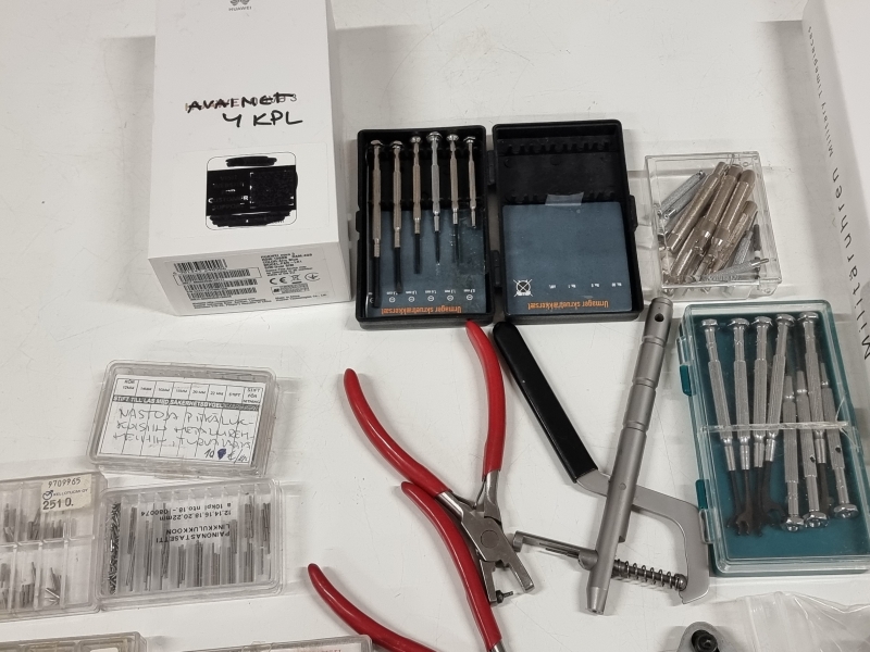 #1894 Erä kellosepän työkaluja ja tarvikkeita + kirja
