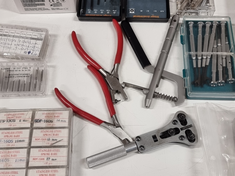 #1894 - Erä kellosepän työkaluja ja tarvikkeita + kirja