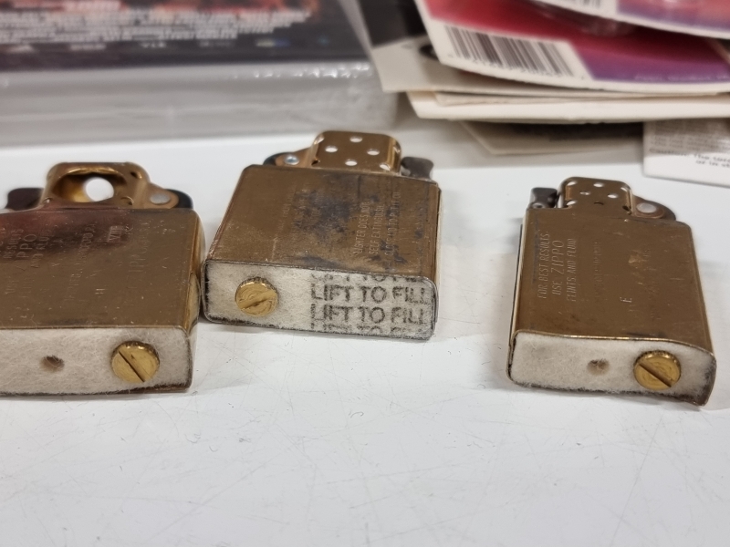 #2374 - Erä zippo - sytyttimiä + tarvikkeita ja DVD - elokuvia