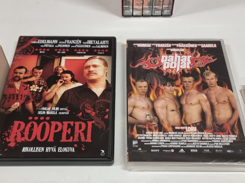 #2374 Erä zippo - sytyttimiä + tarvikkeita ja DVD - elokuvia