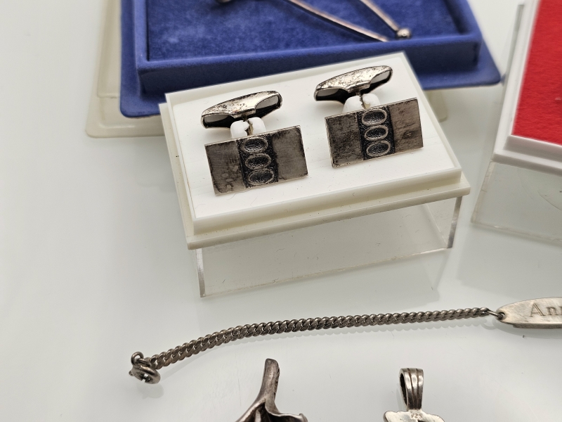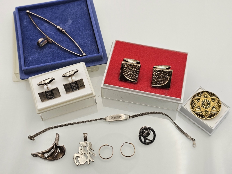 #996 Erä koruja joista osa hopeaa [36g] ja 14k kultaiset korvakorut 0,37g