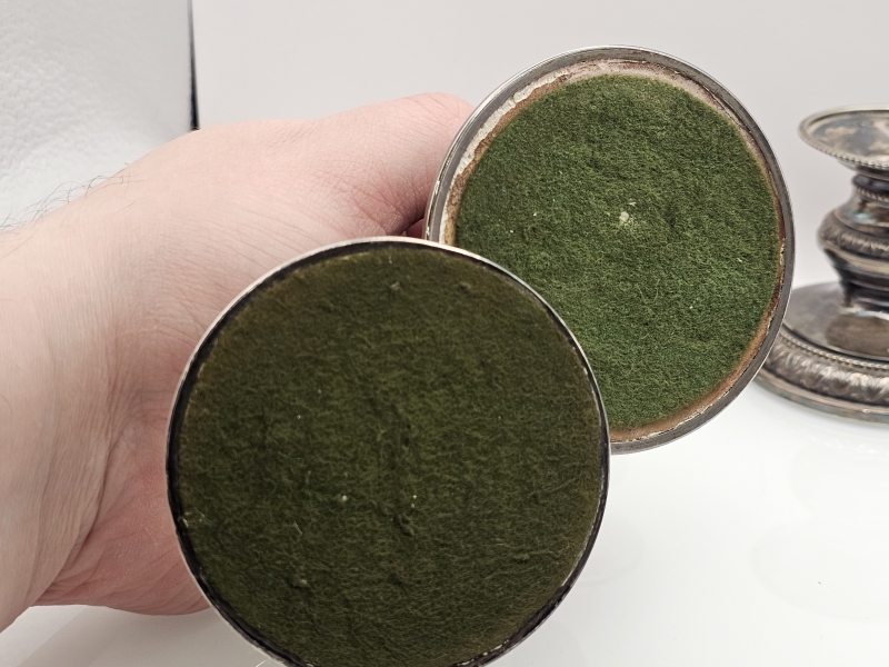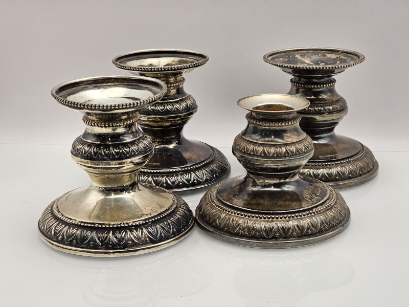 #863 4kpl hopeisia Pilari -kynttilänjalkoja, 813-830h, br. 559g