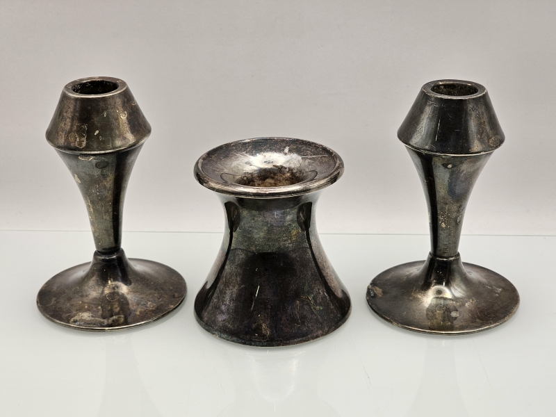 #865 - 1+2kpl hopeisia design kynttilänjalkoja, 830h, br. 316g