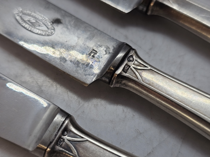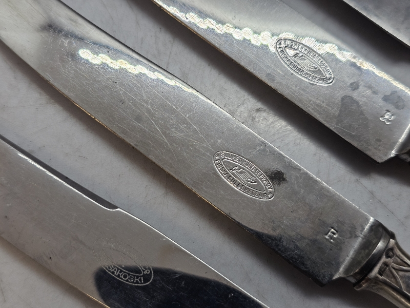 #878 6kpl Suomi-sarjan veitsiä hopeakahvoilla, 813h, br. 337g