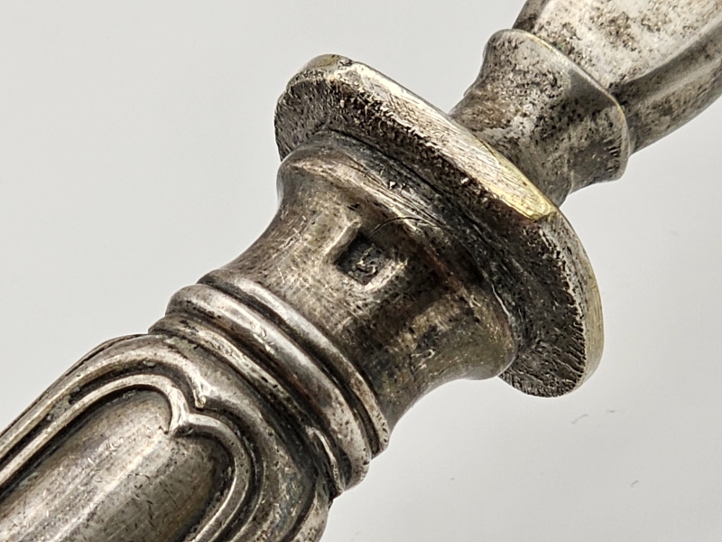 #886 - Vanha hopeavartinen ranskalainen otinlapio hienoilla kaiverruksilla, br. 163g