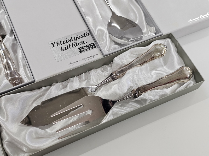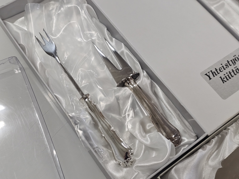 Pitoisuus 830/1000, kärjet hopeaa. Ei kaiverruksia