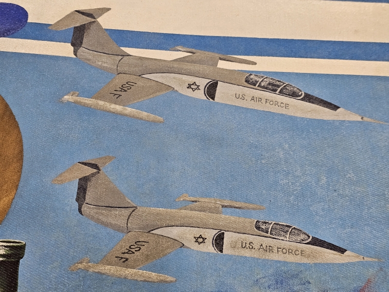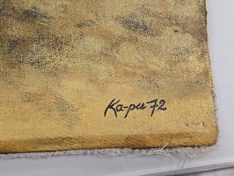 #1837 Kehystämätön iso öljyvärimaalaus, Ka-Pu eli Kari Puhakainen 1972, sodanvastainen aihe