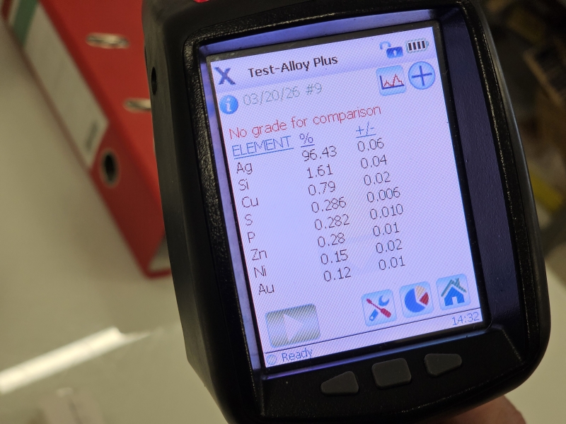 Ei leimoja, kaikki testattu XRF-laitteella: Pitoisuudet n. 925h. Pisin 17,5cm
