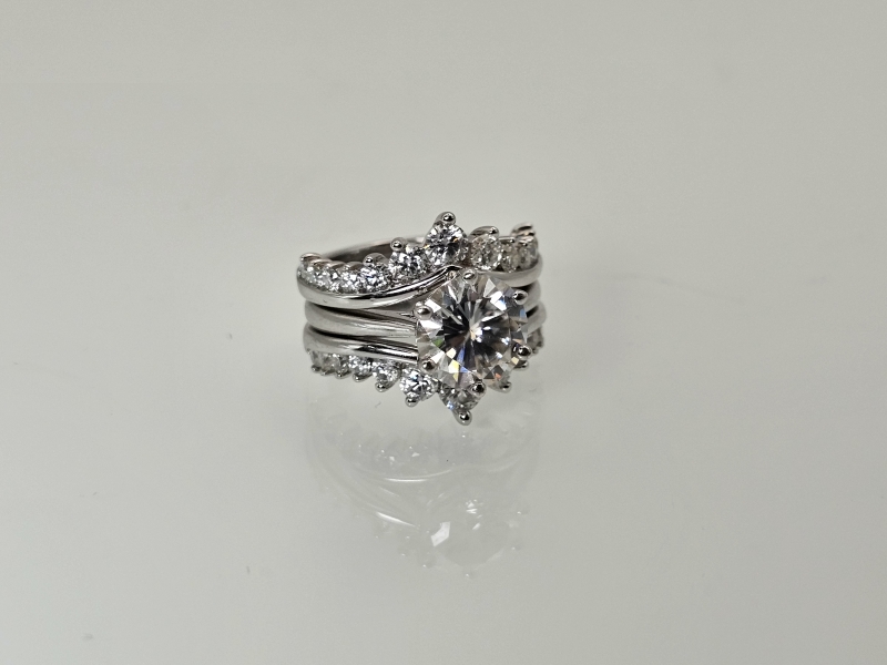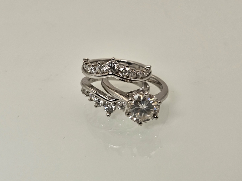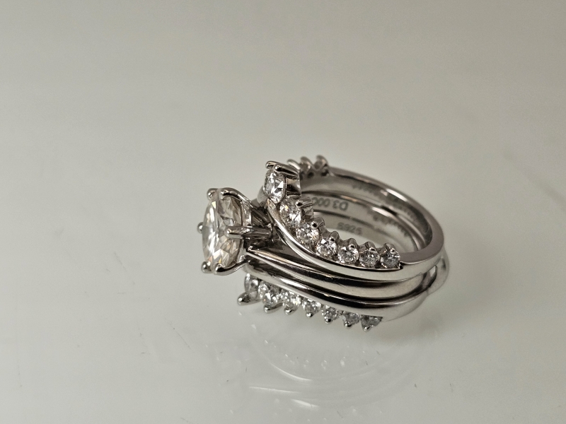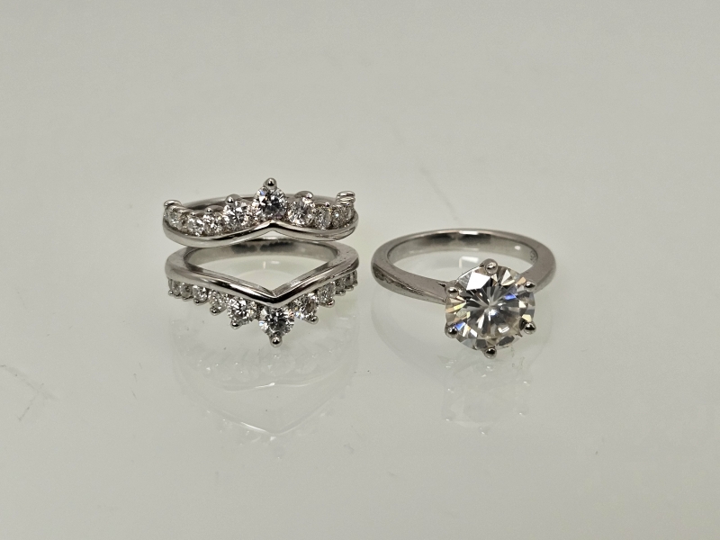 #905 - Hopeinen kaksiosainen sormus jossa yli 3,00ct moissaniitteja