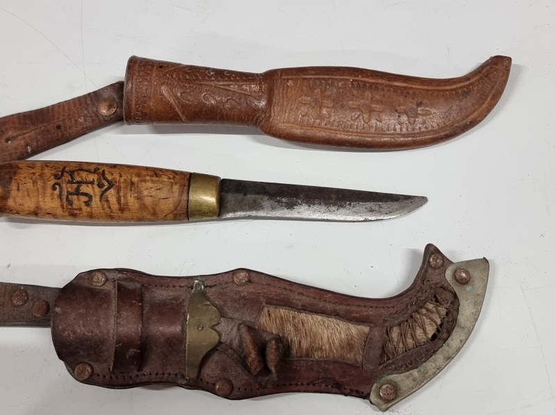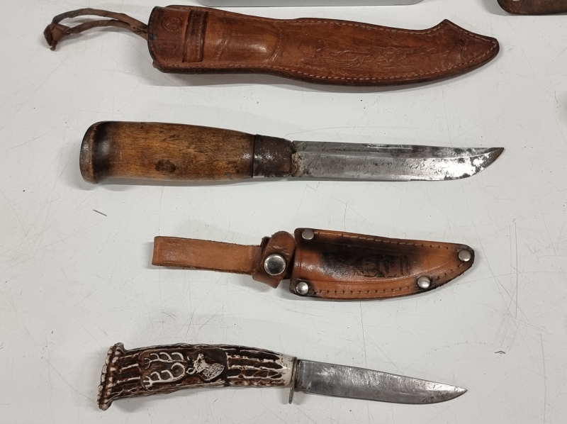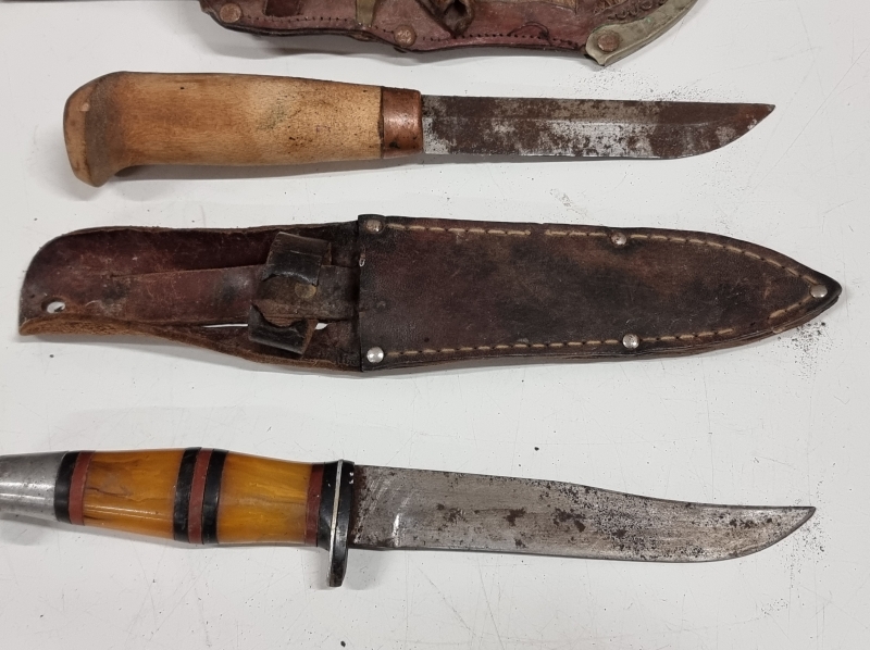 #2170 5kpl puukkoja ja linkkuveitsi, mm. Marttiini eräpuukko