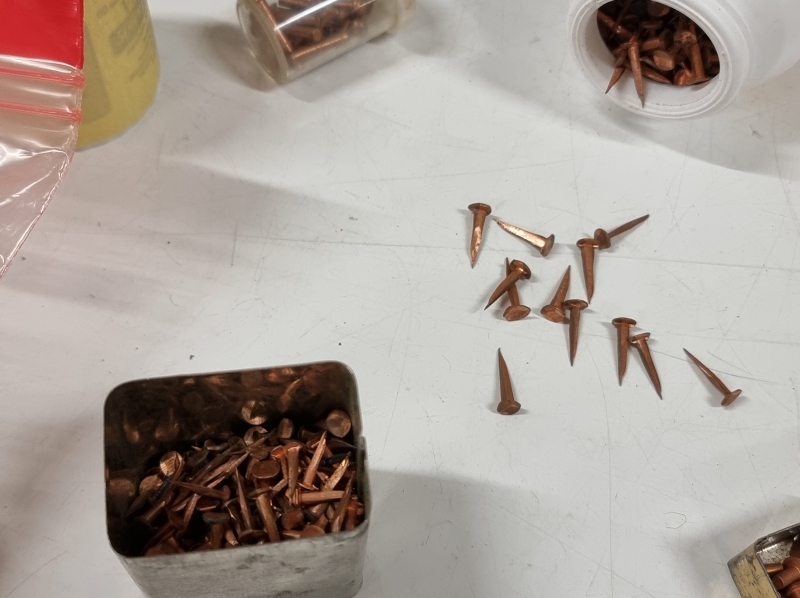 #2487 - Erä kuparinauloja ja -niittejä
