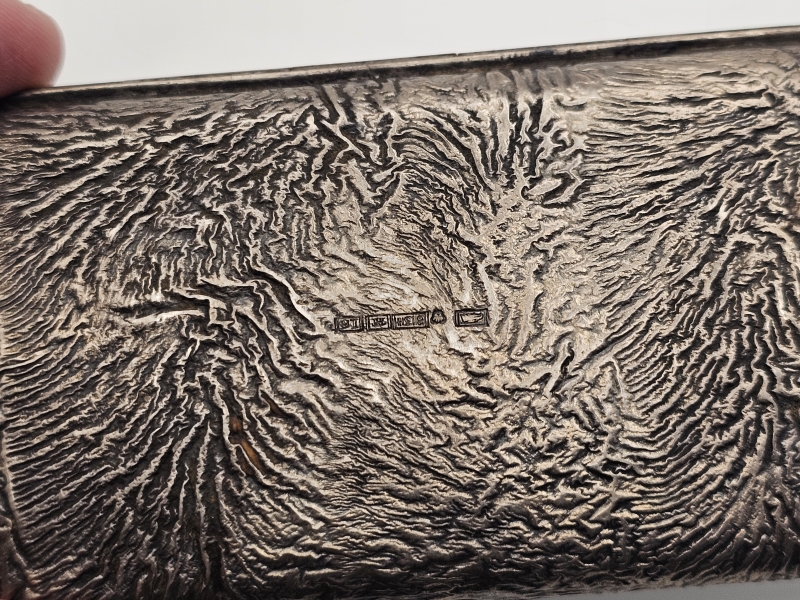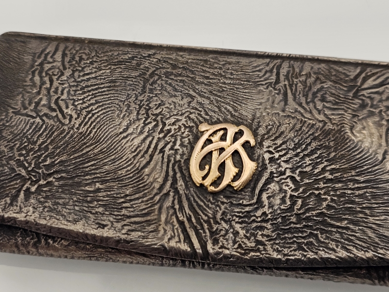 #909 - Hopeinen samorodok silmälasikotelo 14k kultaisella monogrammilla, 813h, br. 90g