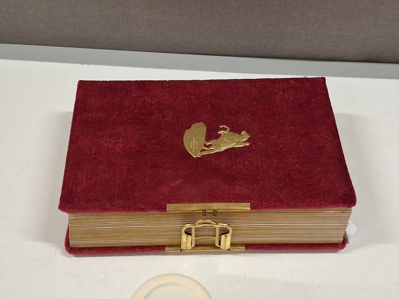 #2421 Erä sekalaista tavaraa mm. Arabia seinälautanen, Volvo B 616 pienoismalli, valokuvakansio ym.