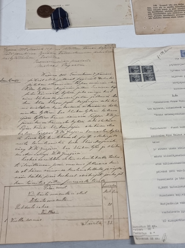 #1832 - Erä myöntökirjoja ja jatkosodan muistomitali ym. nimillä Sibelius, Rosenlew