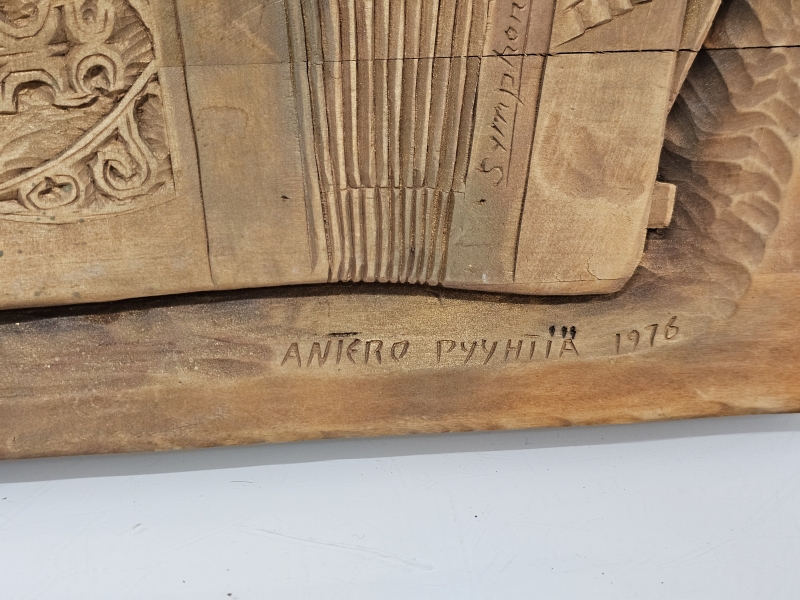 #1831 Lasse Pihjalamaalle kuulunut Antero Pyyhtiän valmistaja puureliefi + kuva