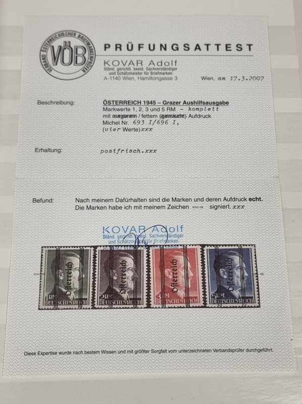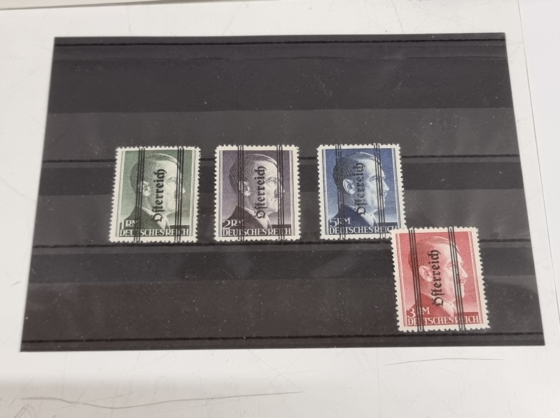 Kaikissa on vahva "Österreich"-ylipainatus alkuperäisillä Saksan valtakunnan Hitler-merkeillä, ei koskaan liimattu. Mukana alkup. aitoustod.