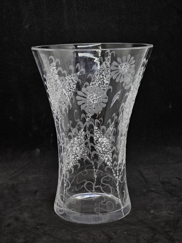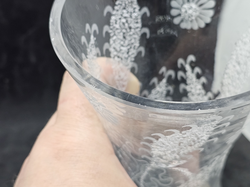 #32 Theodor Käppi - Riihimäen lasi Oy vasaroitu/kaiverrettu maljakko v. -53