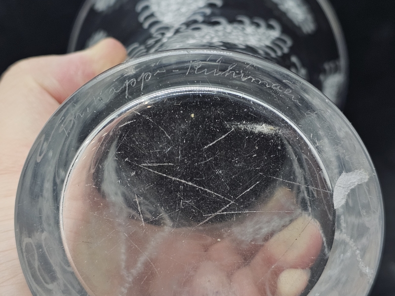 #32 - Theodor Käppi - Riihimäen lasi Oy vasaroitu/kaiverrettu maljakko v. -53