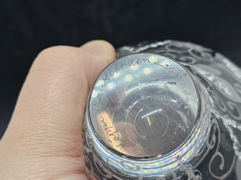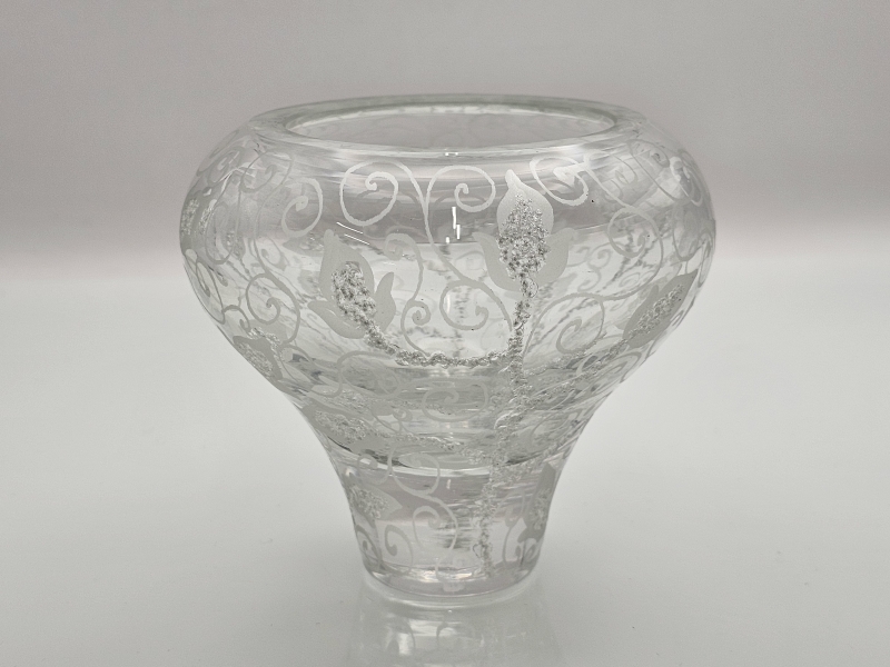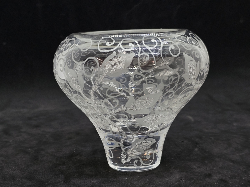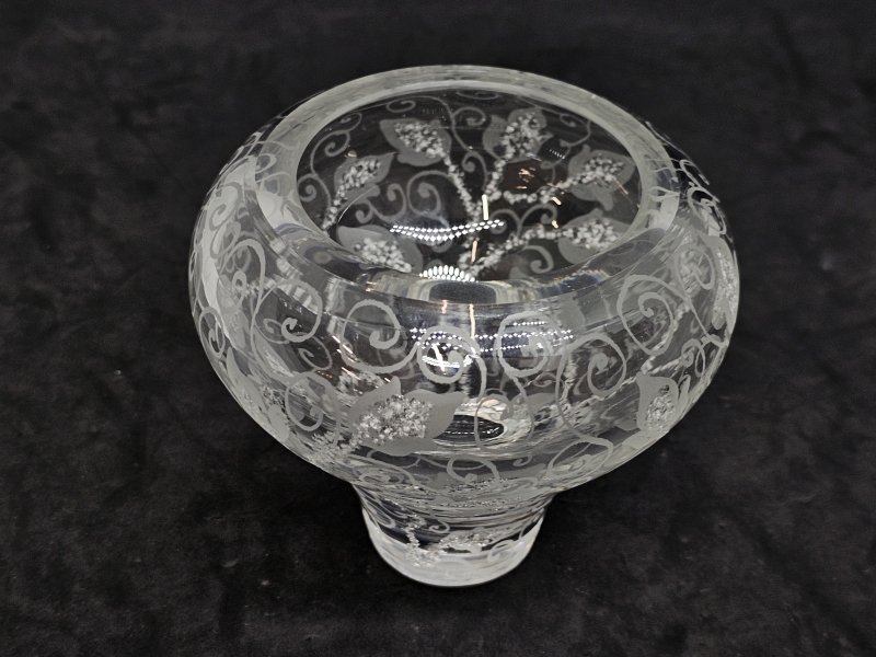#34 Theodor Käppi - Kauklahden lasitehdas Oy vasaroitu/kaiverrettu maljakko v. -52