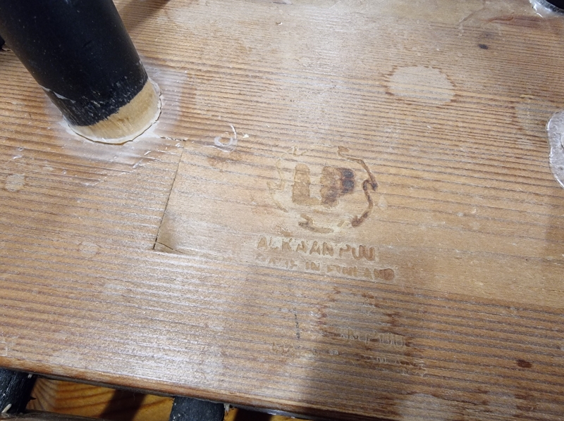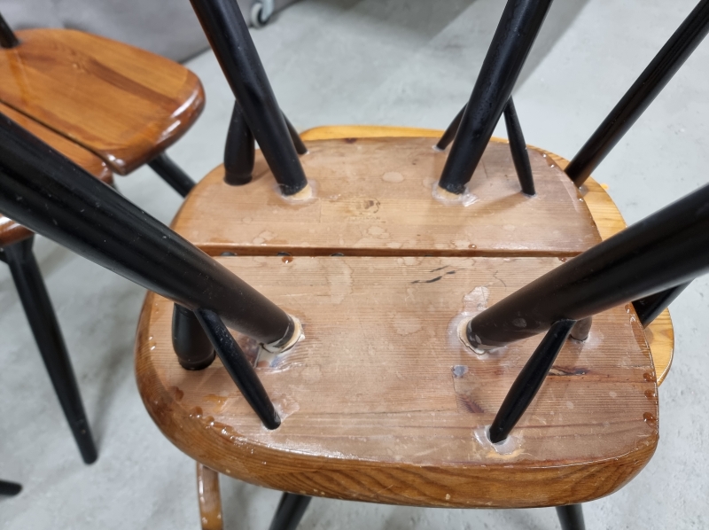 Kulumaa ja kolhuja. 5kpl Laukaan Puu leimalla. Myöhempi lakkaus. L: 38cm ja K:75cm.