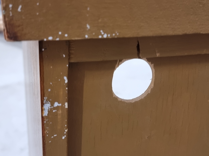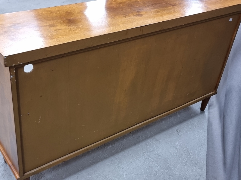 Kulumaa. Myöhempi pintakäsittely. Takalevyssä johtoaukko. L: 140cm S: 32cm K: 80cm.