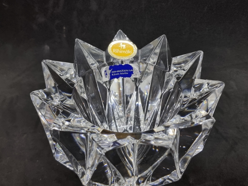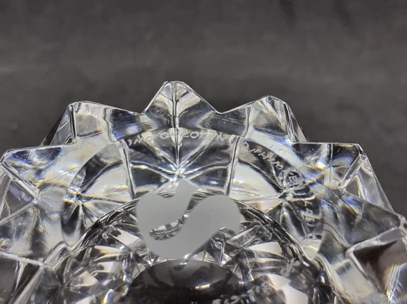 Pieni vika fasetissa. Sign. pohjassa kaiverrus KOP. Halkaisija 12,5cm
