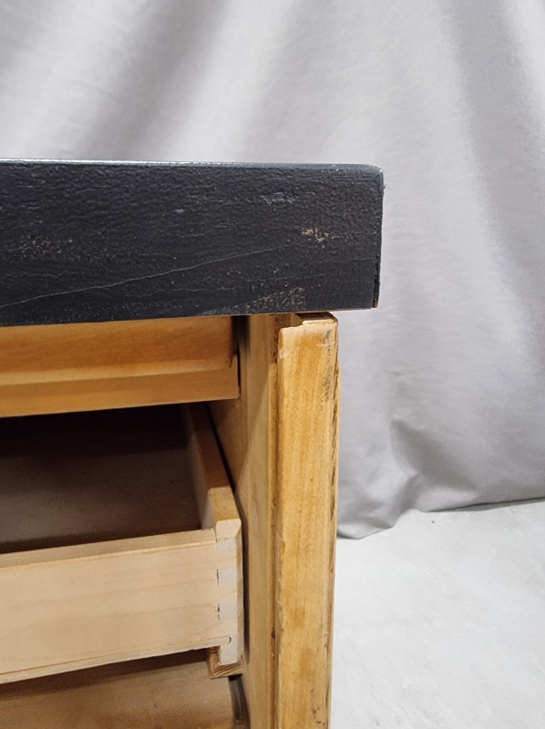 Uudempi pintakäsittely, puuosissa pieniä puutteita. L:161cm, S:81, K:73cm