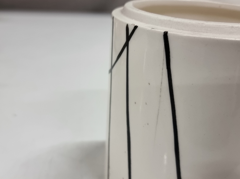Alaosassa halkeama, osien kuviot eivät täsmää, ei sign., korkeus 42cm