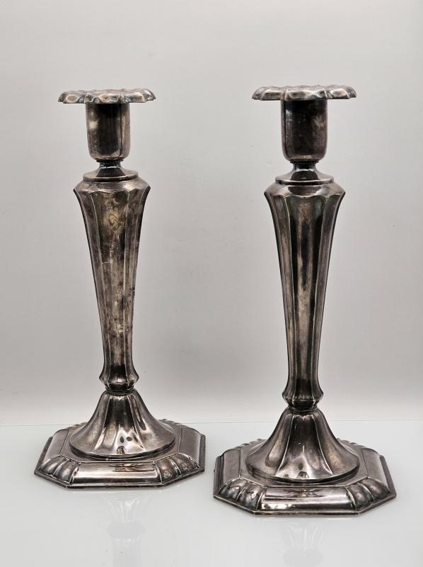 #1050 2kpl hopeisia kynttilänjalkoja v.1961, 813h, br. 390g