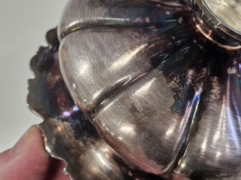 Ei kaiverruksia. Paino 1002g. Pintanaarmuja kiillotuksesta. Kannun k: 23,5cm