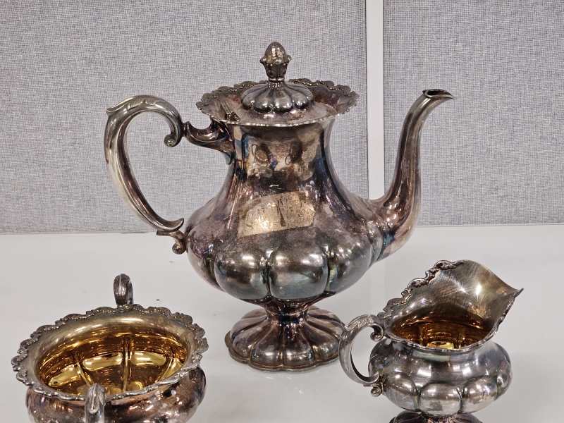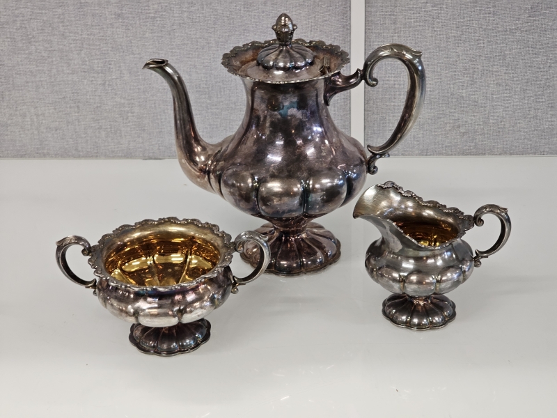 #1200 - Hopeinen 3-osainen kahvikalusto, 830h, 1002g